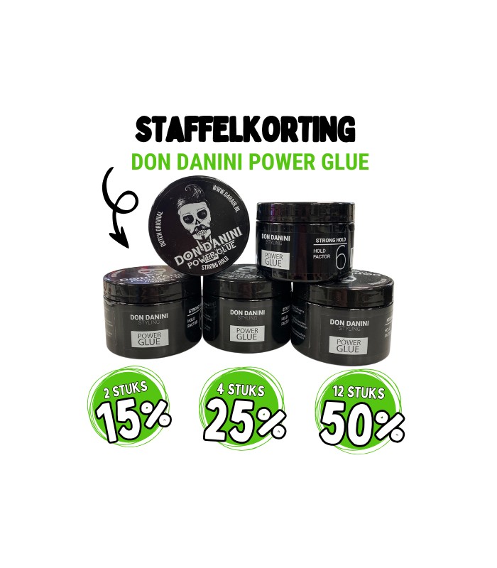 Don Danini Power Glue is en harde gel om extreme styling effecten te maken in kort haar. Creëer en fixeer creatieve styles. Neem de gel in de handpalm en schrunch door het haar.